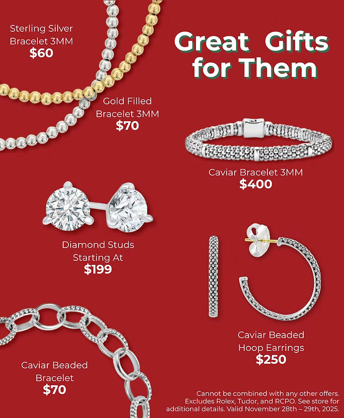 Stay connected on social for sneak peeks at new arrivals, special promotions, and the latest jewelry highlights.